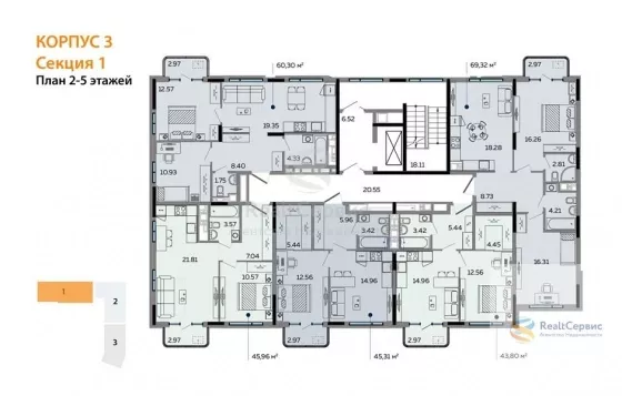 Квартира: 1 к 45,31 кв.м., 2 этаж в комплексе Пять континентов, 2 очередь, корп.3, сдача: 3кв. , этажей: 9, адрес Ижевск г., Карла Маркса ул., , Застройщик: UDS.