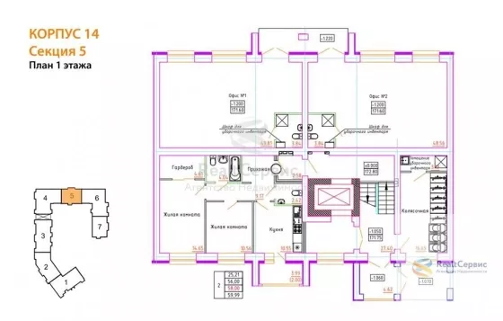 Квартира: 2 к 58,00 кв.м., 1 этаж в комплексе ZNAK, 1 очередь, корп.14, сдача: 3кв. , этажей: 8, адрес Первомайский село, Архитектора Сергея Макарова ул., д. 6/3, Застройщик: Железно.