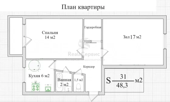 | Площадь, кв.м. | 48.3 |