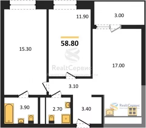 Квартира: 2 к 58,80 кв.м., 11 этаж в комплексе Покровский, 3 очередь, корп.2, сдача: 3кв. , этажей: 17, адрес Ижевск г., Серова ул., , Застройщик: Комос.