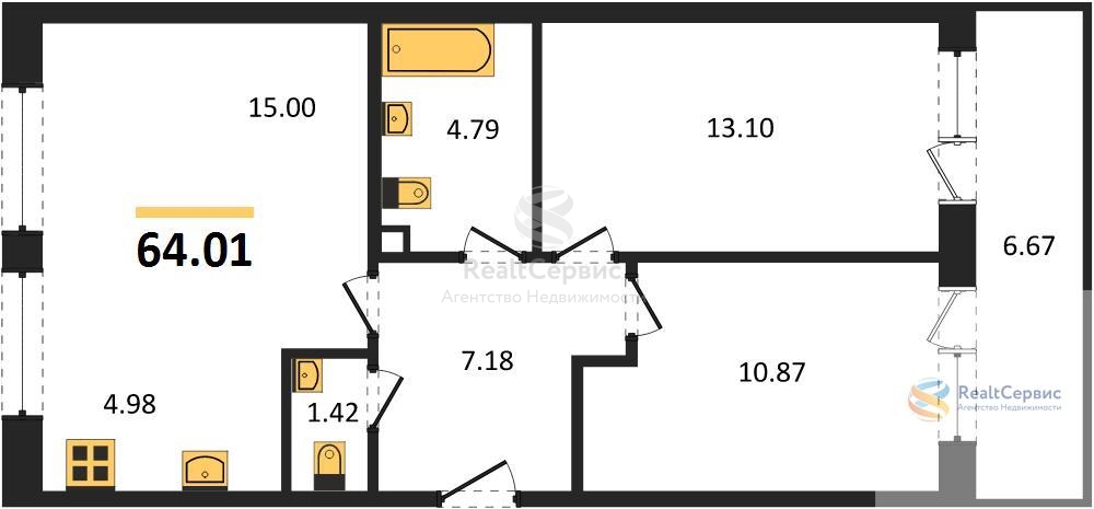 Квартира: 2 к 64,01 кв.м., 2 этаж в комплексе Регард, 1 очередь, корп.2, сдача: 3кв. , этажей: 17, адрес Ижевск г., Воткинское шос., д. 61А, Застройщик: Ривьера Девелопмент.
