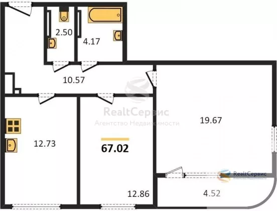 | Площадь кухни, кв.м. | 12.73 |