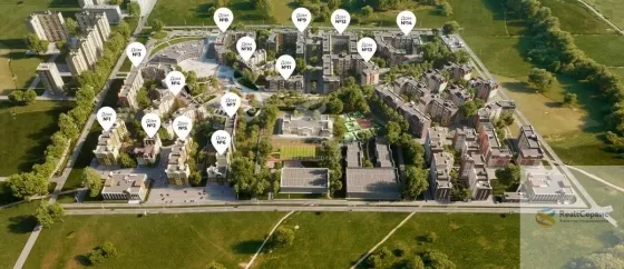 Жилой комплекс представляет собой комплексную застройку, состоящую из кирпичных зданий высотой 8 этажей. Район имеет прекрасную экологию. Проектировщикам удалось гармонично соединить красивый лес с центральным парком и зеленым бульваром. Он расположен в самом сердце поселка и переходит в пешеходные парковые зоны. Весь проект пронизывают зеленые эко-пространства. Здесь размещены общественные пространства для отдыха, прогулок, занятий спортом, а также детские площадки. Архитектура, аллеи, элементы ландшафтного дизайна и скульптуры делают облик жилого комплекса по-настоящему неповторимым.