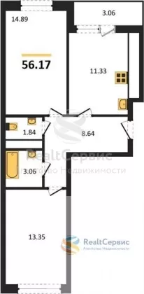 Квартира: 2 к 56,17 кв.м., 8 этаж в комплексе Фамильный дом, 1 очередь, корп.1, сдача: 4кв. , этажей: 17, адрес Ижевск г., Кунгурцева Е.М. ул., , Застройщик: Рентек.