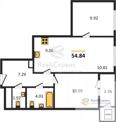 Квартира: 2 к 54,84 кв.м., 16 этаж в комплексе Премьерный дом Чехов Квартал, 1 очередь, корп.1, сдача: 3кв. , этажей: 17, адрес Ижевск г., Чехова ул., , Застройщик: Литум.