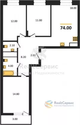 Квартира: 3 к 74,00 кв.м., 3 этаж в комплексе Истории, 2 очередь, корп.5.2, сдача: 4кв. , этажей: 14, адрес Ижевск г., Фруктовая ул., , Застройщик: Комос.
